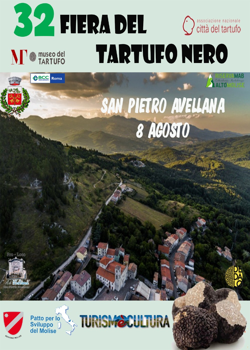 La Fiera del Tartufo Nero è l’originale occasione per raccontare la perla della gastronomia molisana e la terra da cui nasce con i suoi aspetti culturali, agricoli, ambientali, gastronomici e turistici. I visitatori che si aggireranno tra gli stand, potranno trovare tartufi freschi di varie pezzature raccolti dai cavatori molisani, piatti a base di tartufo, creme con il tartufo, salumi e formaggi con il tartufo come la Soppressata e il Caciocavallo, pasta con il tartufo, burri, carpacci e tartufi a fette, condimenti aromatizzati con il pregiato fungo, miele, pesto e tante specialità, anche quelle che durante l’anno si possono ricevere a casa tramite il negozio di paese online www.sanpietroavellana.shop