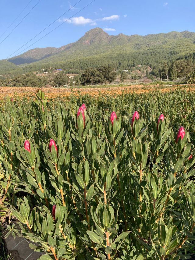 Eduardo e il suo socio Pino Ramó Pérez hanno la loro piantagione di protee proprio accanto alla strada che conduce i visitatori al Parco Nazionale Caldera de Taburiente. La posizione strategica ha fatto sì che il sito sia diventato una tappa obbligatoria per i visitatori che passano per El Paso. “Raccontiamo ai turisti come vengono coltivate le protee e poi regaliamo loro un fiore. Oltre ad offrire una vera e propria esperienza , contribuiamo a far conoscere il mercato delle protee delle Canarie sia in Europa che in altri continenti. Il clima locale qui è perfetto per la coltivazione di questo fiore che oggi è difficile da trovare persino in Africa”, spiega Eduardo.