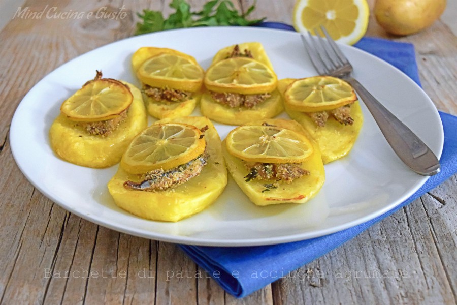 Sono buonissime anche fredde le barchette di patate e acciughe agrumate.