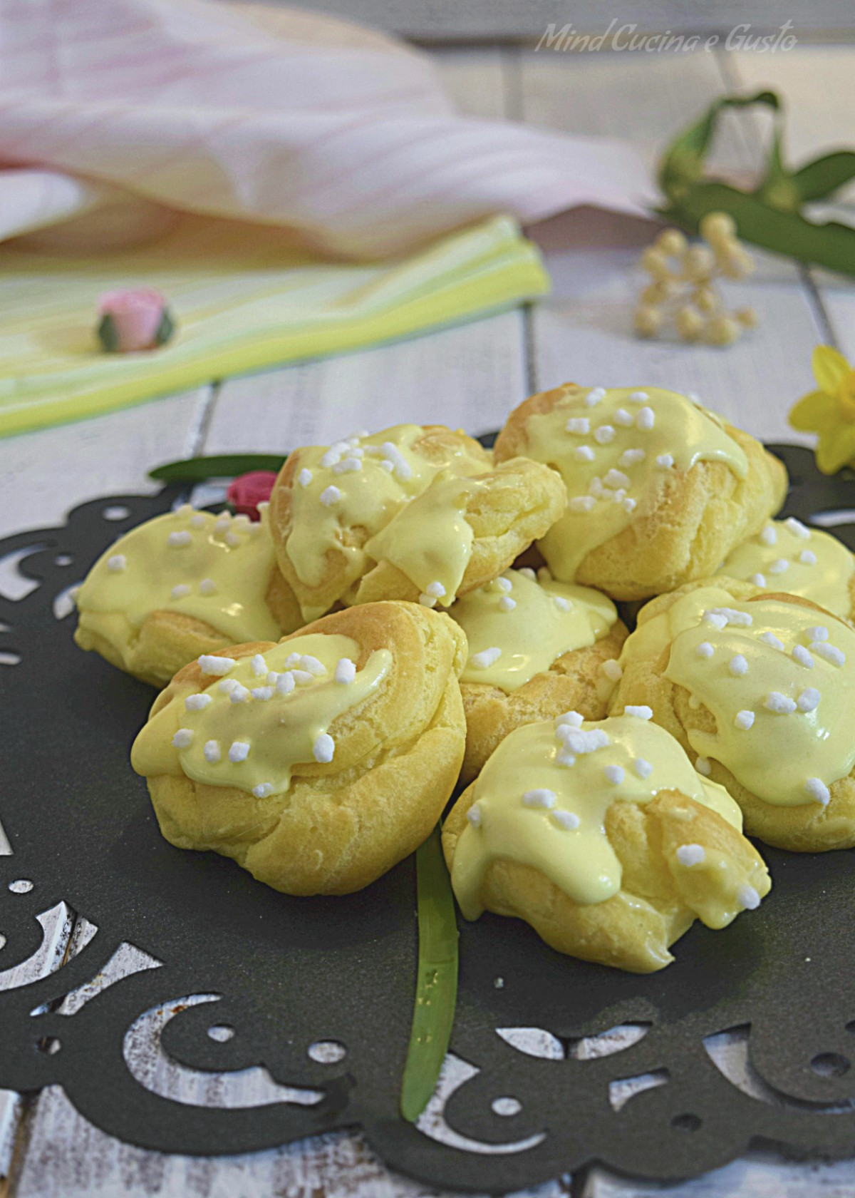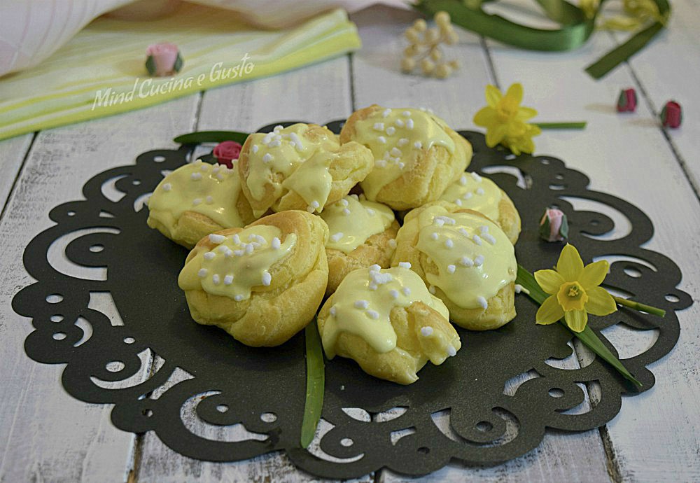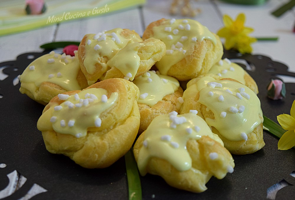 Bignè mimosa con crema diplomatica e glassa al limone