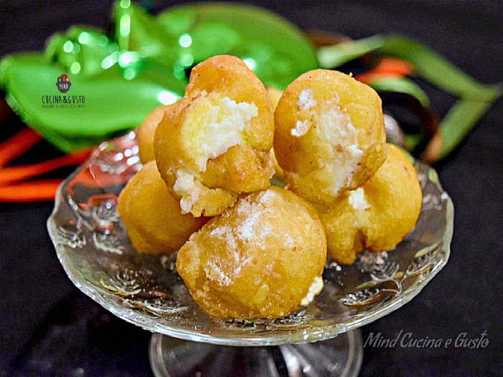Le castagnole farcite con crema alla ricotta sono golosissime.