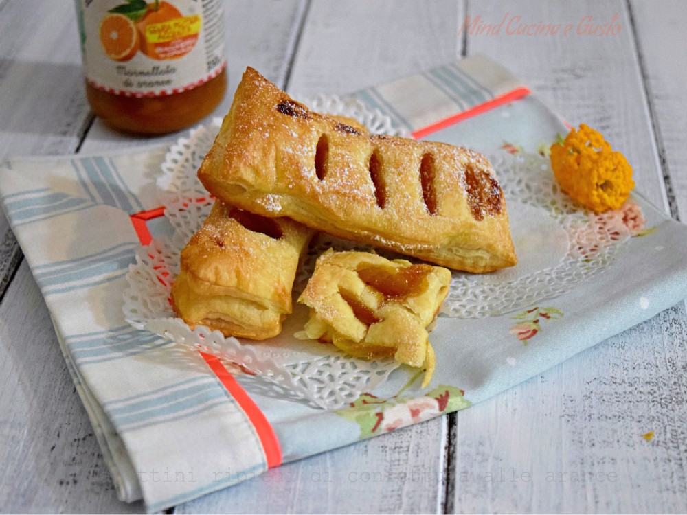 Spolverizzar con zucchero a velo e d ecco pronti i Fagottini con confettura alle arance.