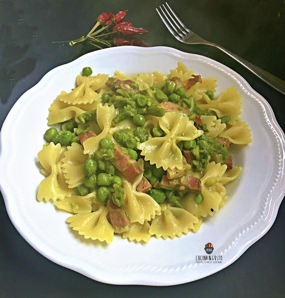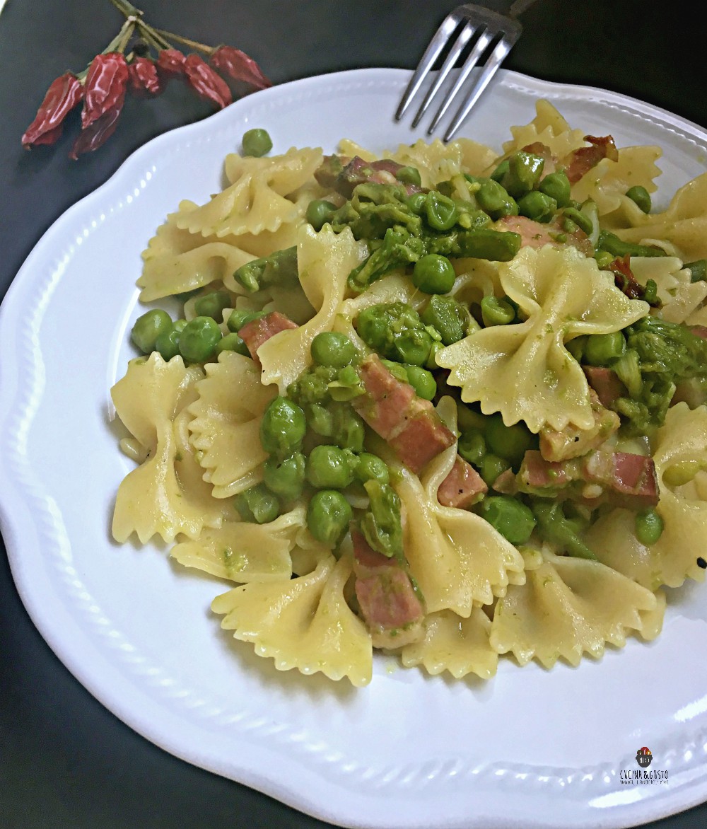Le farfalle primavera piccanti che propongo oggi, un primo piatto davvero semplice e ricco di gusto. Oltre agli asparagi e piselli, per dare più sapore ho usato la pancetta e come tocco finale il peperoncino che rende il piatto super gustoso. Inoltre adoro usare questo le farfalle come formato di pasta nelle stagioni estive, rappresentano davvero la leggerezza e freschezza nel piatto. Un primo pronto in pochissimo tempo, gustoso e ricco dei profumi della primavera. E per chi ama il piccante, sono speciali. Andiamo a vedere come si preparano.