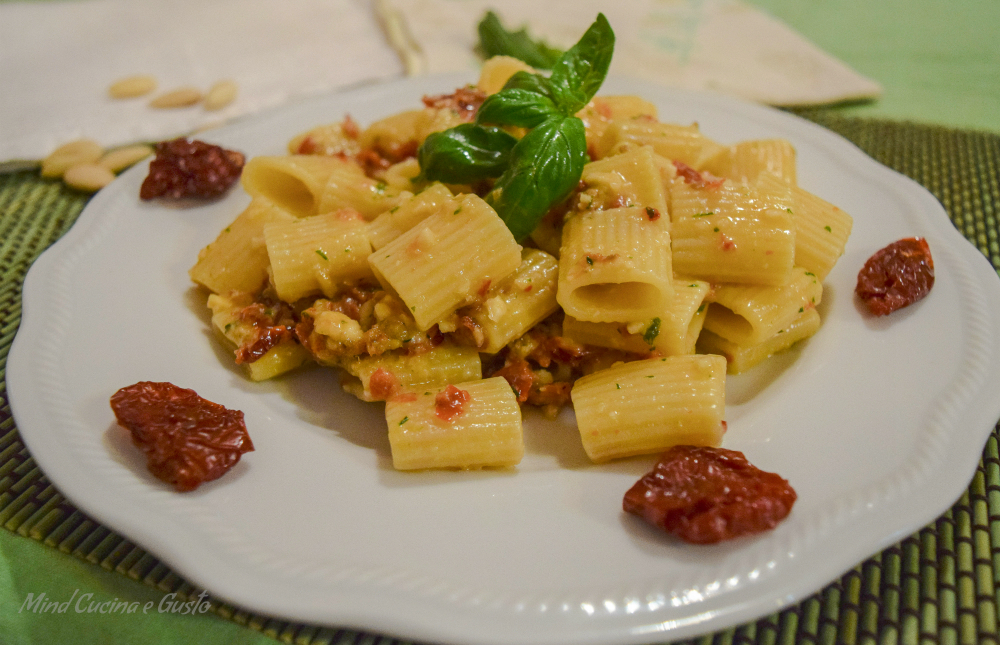 Mezze maniche con pesto di mandorle e pomodori secchi
