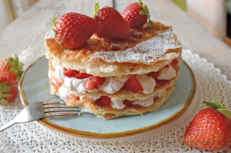 Buongiorno a tutti. Eccomi di nuovo qui con una ricetta davvero facile e veloce la Millefoglie alle fragole ricetta veloce e buonissima. Questa ricetta è davvero semplice e richiede un impegno minimo ma è fatta per una ragione. Oggi dopo 29 giorni di immobilità in seguito ad una caduta, sono tornata finalmente a camminare e per festeggiare ho voluto subito preparare per voi questa millefoglie. Non avendo ancora molta facilità di movimento, questo è il massimo che sono riuscita a fare. Ho preso spunto dalla trasmissione Detto Fatto di oggi dove hanno passato, in diretta con gli ascoltatori, la preparazione della millefoglie espressa e quindi la ripropongo variando qualche ingrediente.