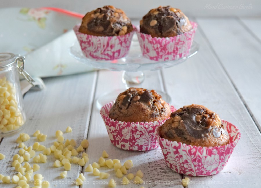 Muffin bicolore con gocce di cioccolato bianco – ricetta senza burro facili e veloci.