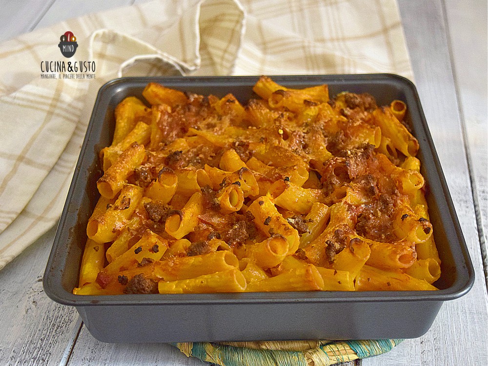La pasta al forno veloce con salsiccia senza besciamella una ricetta semplice e super gustosa per preparare la pasta al forno anche all’ultimo momento senza rinunciare ad un piatto invitante. Se non hai in casa la besciamella pronta oppure non hai tempo per prepararla, la pasta al forno veloce è davvero la soluzione migliore e inoltre il ragù di salsiccia è pronto in poco tempo e non richiede lunghi tempi di cottura. Ma sai come mi è venuta l’idea di preparare la pasta al forno veloce? L’altro giorno ero già pronta per la lasagna con il ragù di salsiccia e mi sono accorta di non avere la besciamella e neanche di fare in tempo a prepararla e guardando in frigorifero ho visto la ricotta e in men che non si dica eccola pronta. Gustosa e filante è davvero facilissima. Prova questa ricetta è davvero da non perdere.