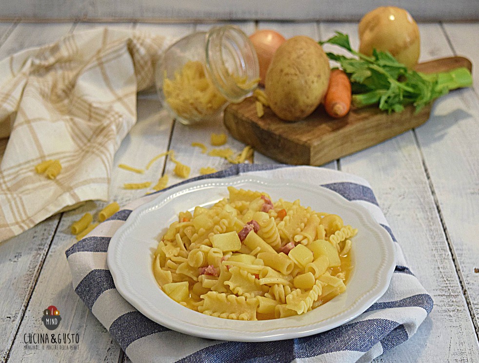 Da un po’ di tempo pensavo di preparare la pasta e patate, una ricetta che non può mancare in un blog di cucina. Un primo della tradizione italiana, un piatto popolare povero e saporito. Preparato con pochi ingredienti, è particolarmente adatto nelle giornate invernali perfetto per riscaldare e dare energia. Una volta la pasta e patate veniva preparata con gli avanzi di pasta, dagli spaghetti spezzettati alla pasta corta. Ogni regione ha la propria versione tradizionale, io oggi ho voluto prepararla con una ricetta che ho letto in un ricettario e per questa pasta e patate ho usato la pancetta, il parmigiano e la provola affumicata, qualche cucchiaio di pomodori fatti in casa e soprattutto la pasta mista che viene cotta insieme alle patate, così da risultare morbida e cremosa e non troppo brodosa. Provala e ti leccherai i baffi per il suo sapore.