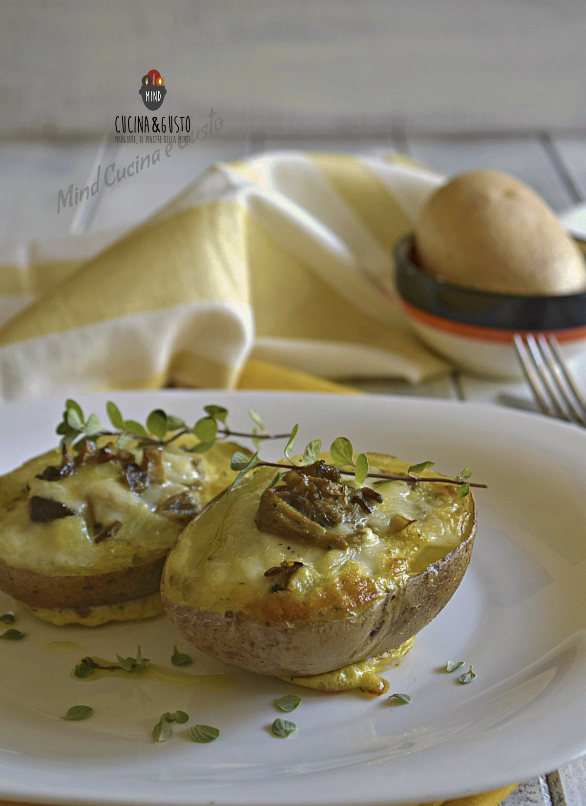 Patate farcite con funghi e fontina pronte in pochissimo tempo.