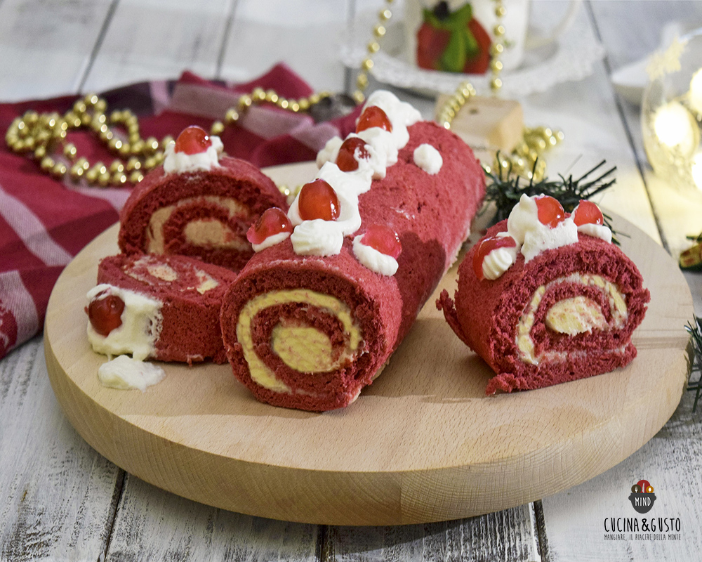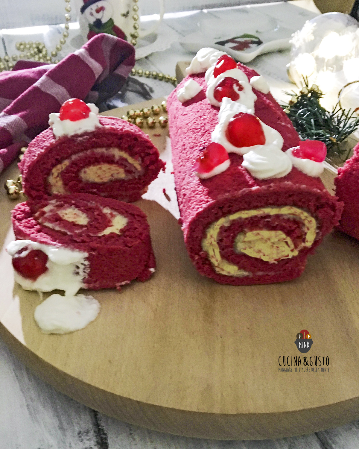 Una ricetta dedicata al Natale bella e super golosa il rotolo red velvet. Se vuoi preparare un dolce per il Natale il rotolo natalizio red velvet è perfetto. Pronto in poco tempo è facilissimo. Una morbida pasta biscotto natalizia, con un delizioso ripieno al cioccolato bianco, e decorato con panna e ciliegine rosse candite con il colore del Natale. È davvero bello servito in tavola durante i giorni delle festività. Riscuoterai grande successo portandolo in tavola e delizierà il palato dei tuoi ospiti. Vediamo subito la ricetta.