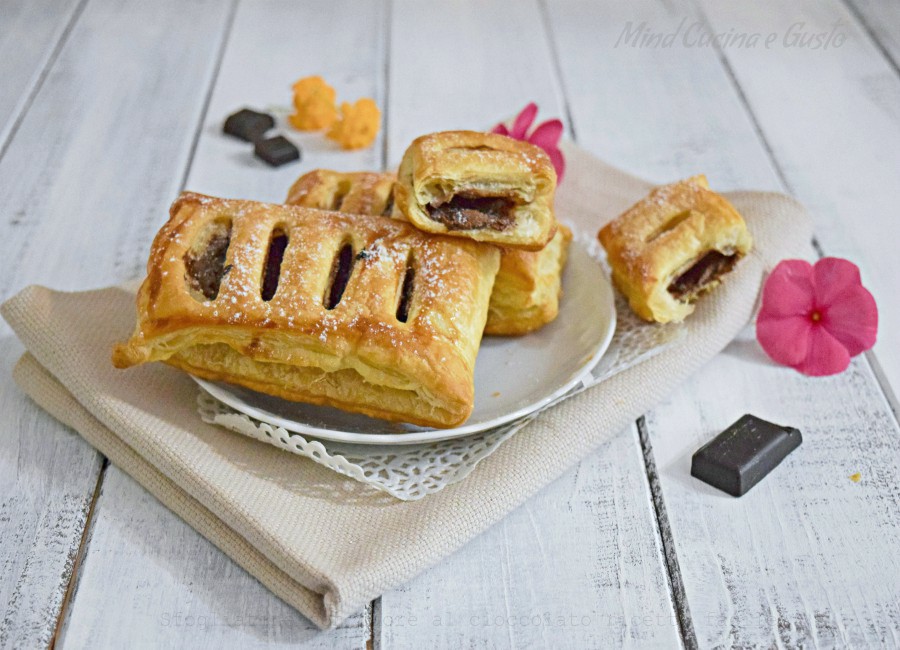 Si preparano davvero facilmente con la pasta sfoglia e del cioccolato e il dolce è pronto. Golose e deliziose sono di facilissima esecuzione e ideali per la prima colazione.