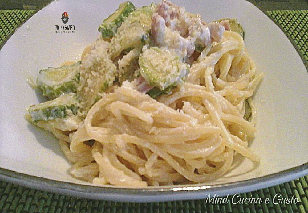 Buonissimi gli Spaghetti cremosi zucchine pancetta e ricotta.