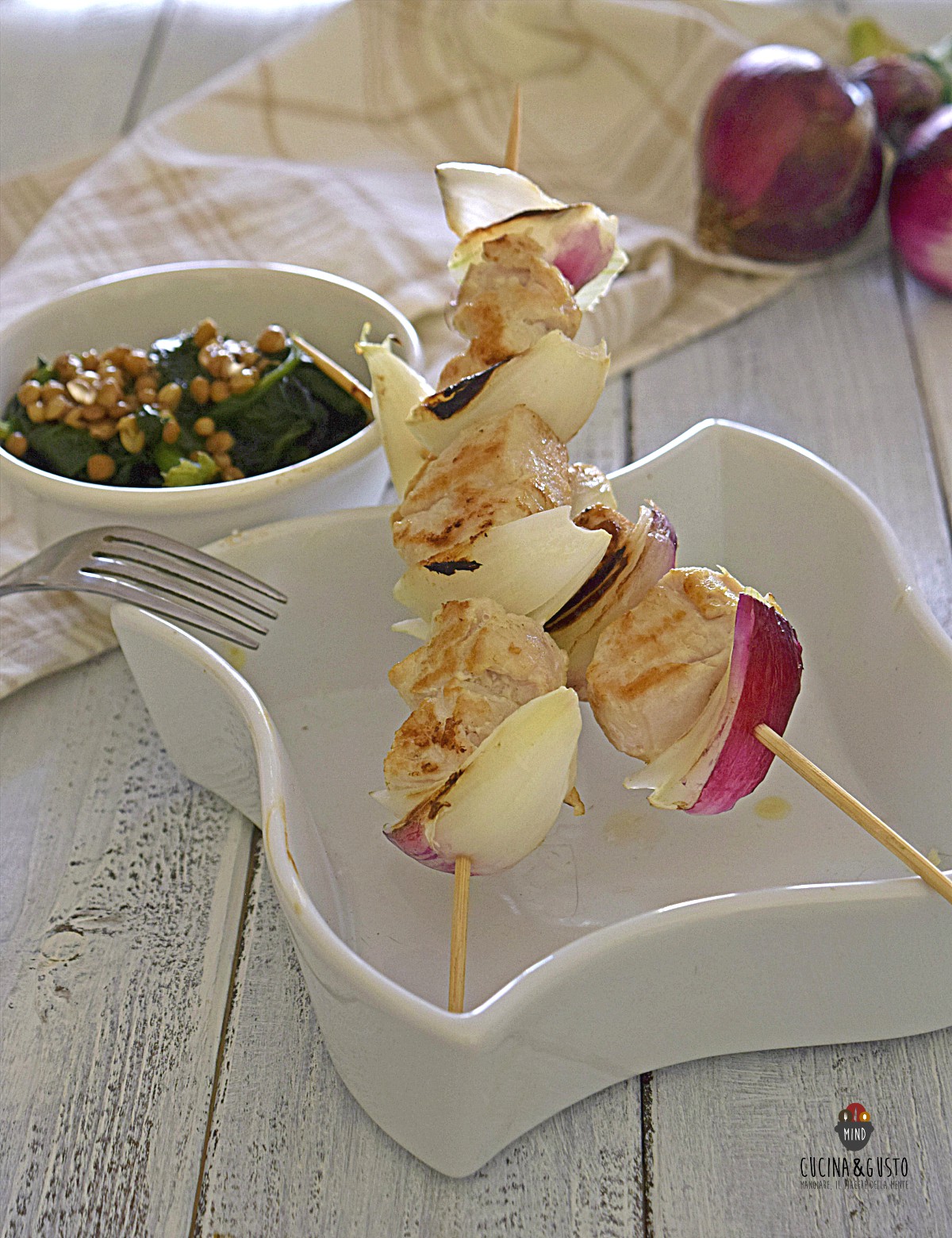 Eccomi con gli spiedini di coniglio gustosi con cipolle rosse spinaci e lenticchie, una ricetta a base di carne di coniglio, cipolle rosse e spinaci che insieme creano un secondo davvero speciale a base di carne ma non la solita ricetta vista e rivista. Bensì un piatto appetitoso, leggero e sano con pochi ingredienti salutari. Pronti in pochissimo tempo, gli spiedini di coniglio saranno graditi a tutti, con il loro gusto importante e delicato. Sono delicati e ricchi di proteine sane e sali minerali come potassio e ferro. D’altronde il coniglio è una carne indicata per l’alimentazione dell’infanzia, ovviamente senza la cipolla. Prova questa deliziosa ricetta leggera e san.
