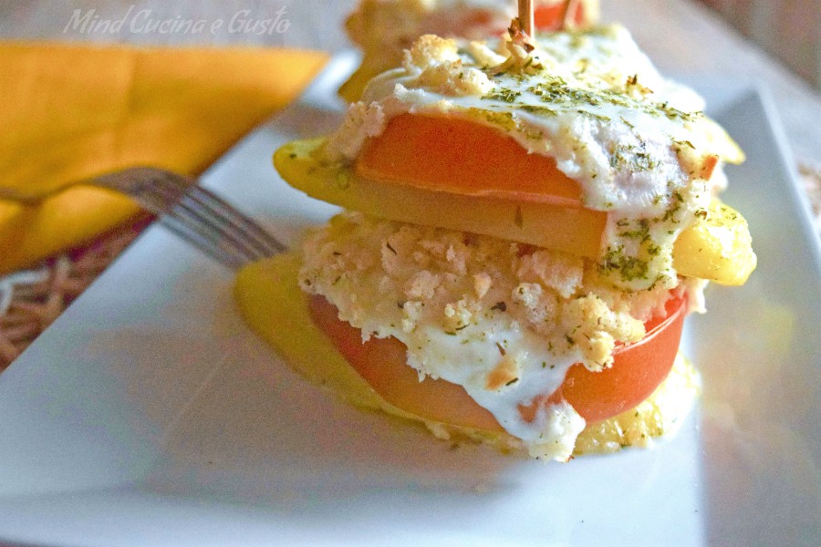 Le torrette di mozzarella panate con patate aromatizzate alle erbe sono un secondo piatto elegante e scenografico. Questa ricetta mi è piaciuta all’istante quando l’ho vista su La Cucina Italiana. Nella sua semplicità è un trionfo di sapori freschi e genuini e racchiude pienamente la cultura mediterranea che sappiamo bene è essenzialmente fatta di ingredienti semplici e gustosi. Veloce nella preparazione, è un piatto perfetto sia per una cena veloce casalinga, sia servito per un’occasione importante. Provatela è strepitosa.