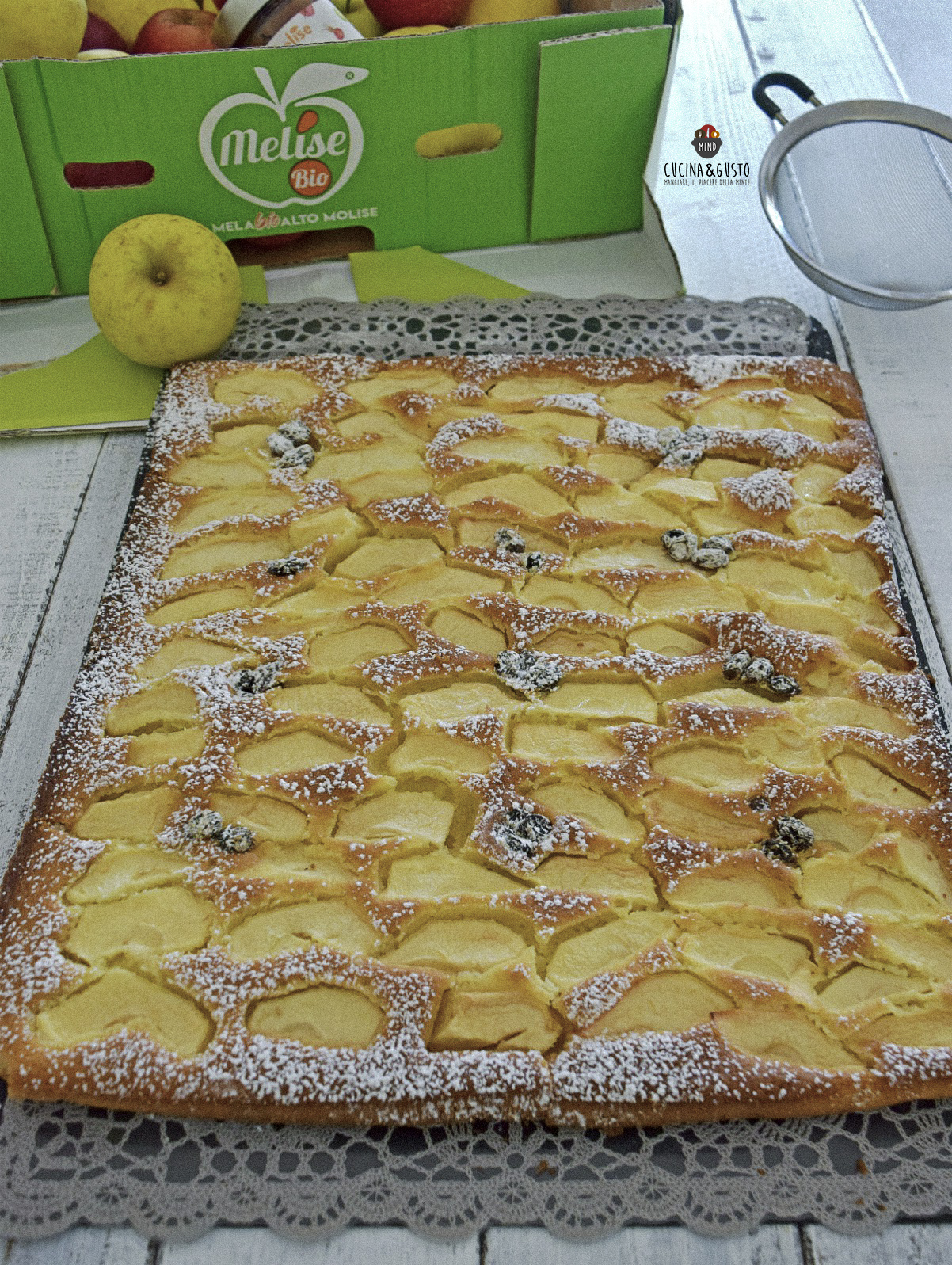 Le mele utilizzate per questa torta sono un prodotto di eccellenza dell’Azienda agricola Melise che dal 2003, si prefigge di recuperare i terreni in stato di abbandono o di semi-abbandono del comune di Castel del Giudice attraverso la coltivazione delle mele e di altre specie, la trasformazione, la commercializzazione e la valorizzazione in generale dei prodotti agricoli di qualità ottenuti attraverso un’attenta ed oculata gestione del territorio.