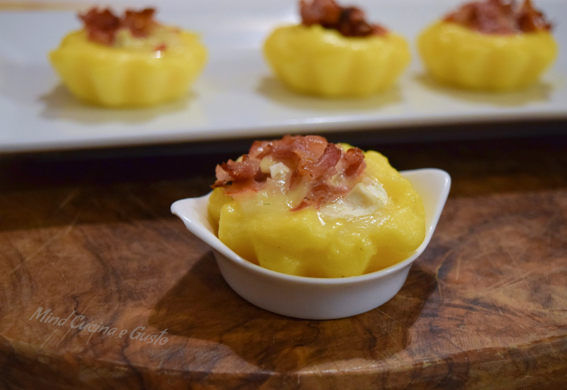 Tortine di polenta con speck pomodori secchi e brie