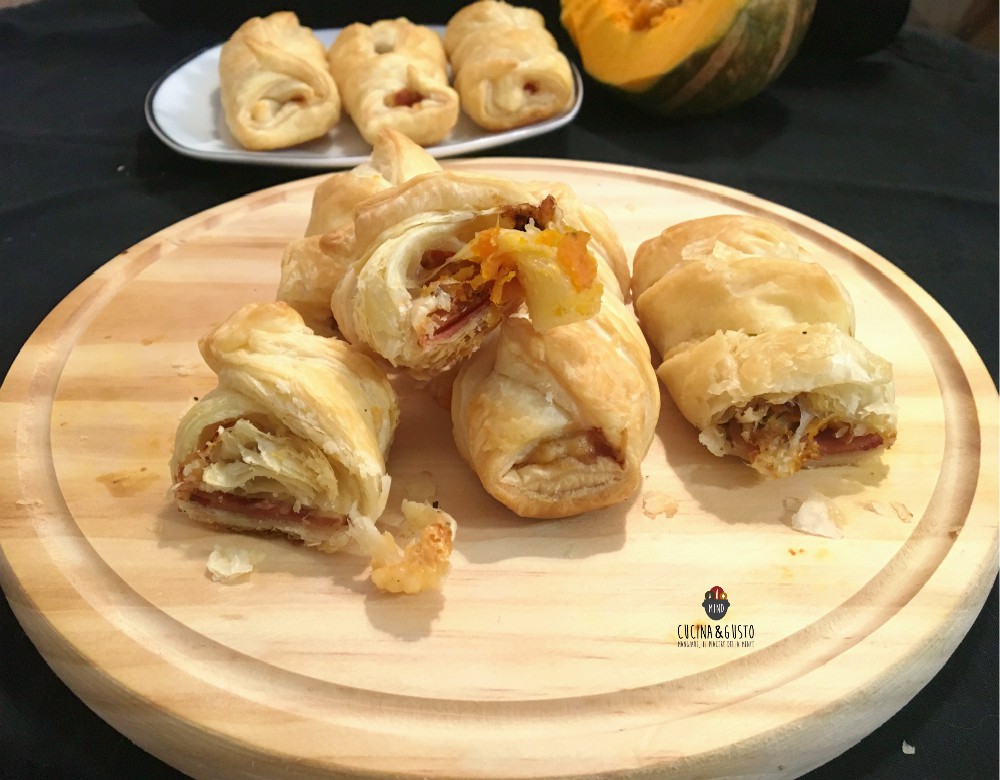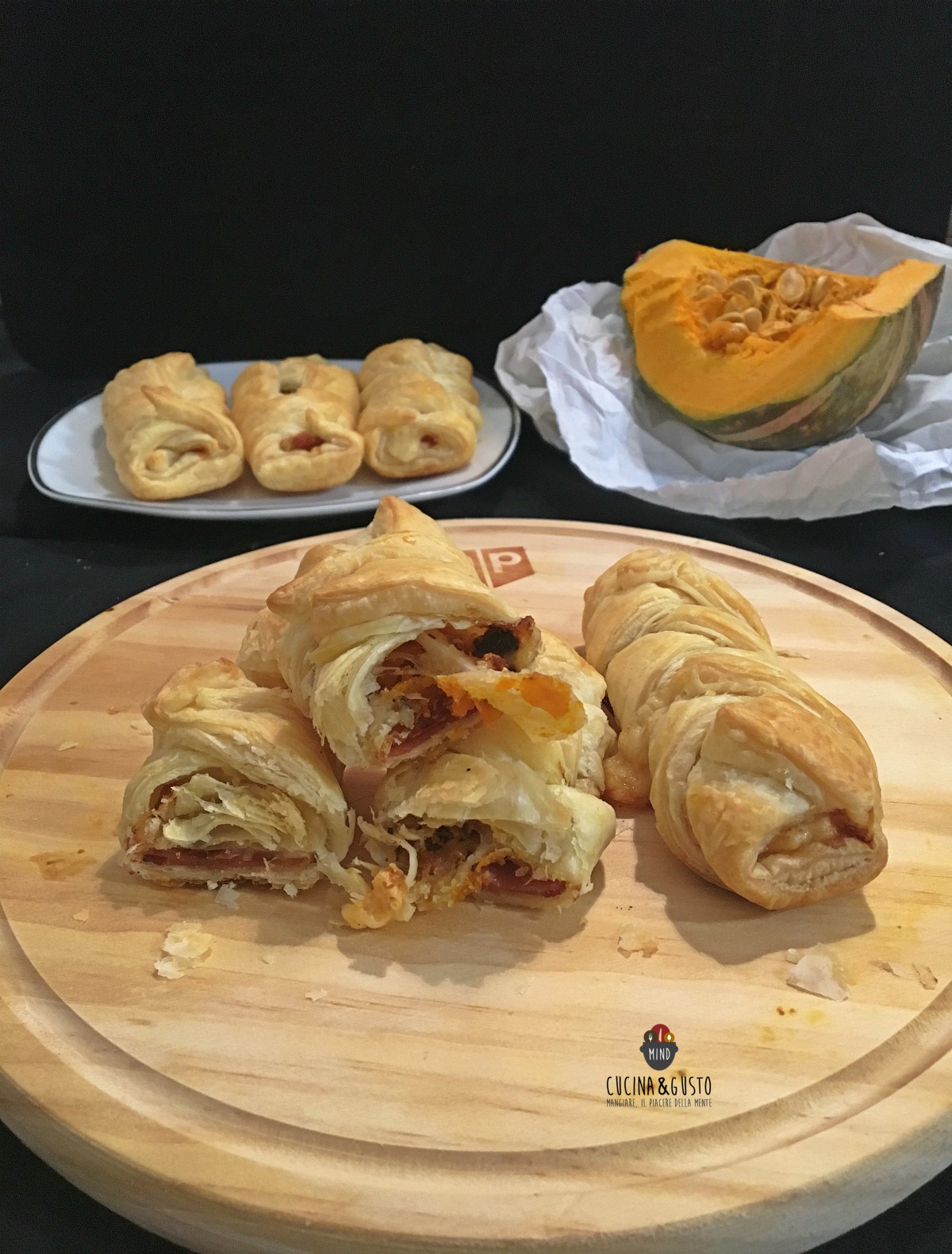 Treccine di pasta sfoglia al formaggio speck e zucca