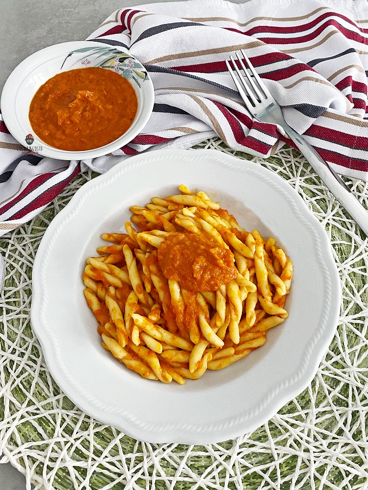 Trofie con sugo veloce di peperoni senza pomodoro