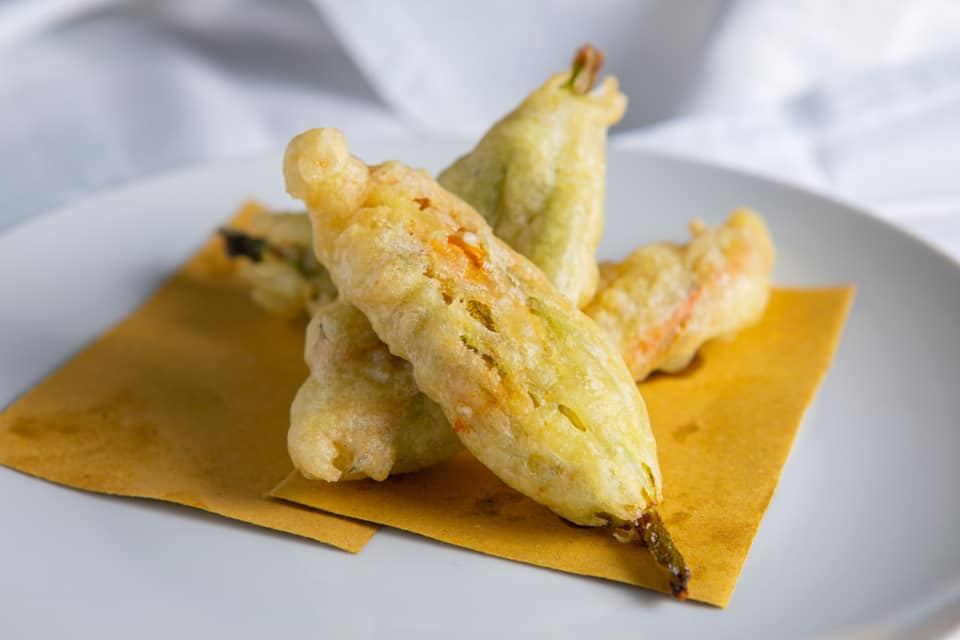 Niente da togliere ai fiori di zucca in pastella con caciotta e alici, deliziosamente croccanti e non unti.