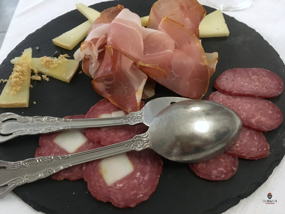 Si inizia con un mix di salumi abruzzesi e formaggi tra cui il canestrato con miele. e noci.