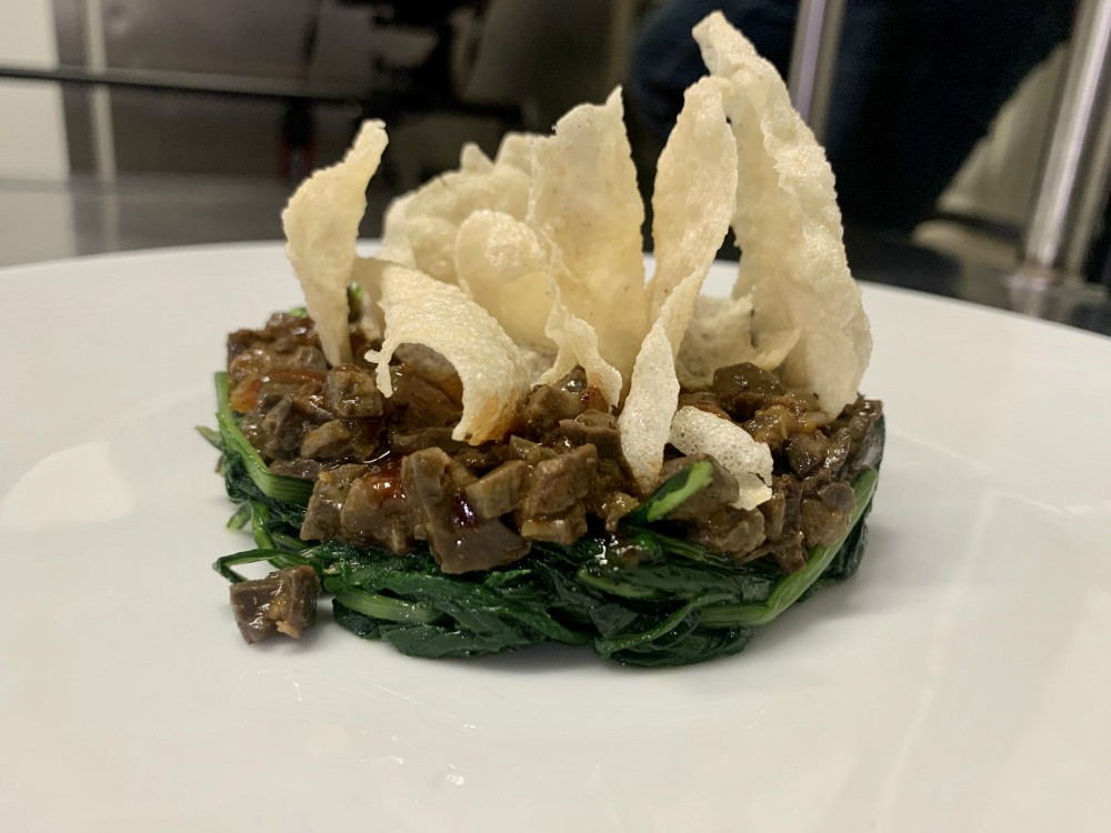 La Pastorale Aquilana, coratella d’agnello, cicoria, salsa agrodolce e riso croccante, un grande classico della tradizione abruzzese, è davvero super gustoso.