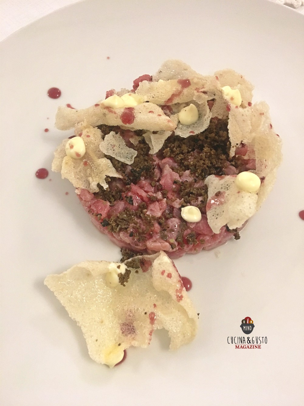 Io già da Roma avevo deciso di prendere la Tartare di Manzo con chips di farro, tartufo e gocce di maionese, piatto originale che non ha tradito le mie aspettative.
