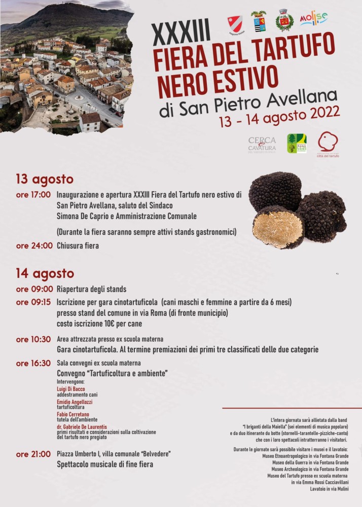 La Fiera del Tartufo di San Pietro Avellana è organizzata dal Comune di San Pietro Avellana con il Patrocinio della Provincia di Isernia e rientra nell’ambito degli eventi promossi da Turismo è Cultura della Regione Molise.